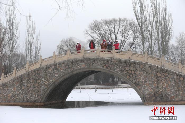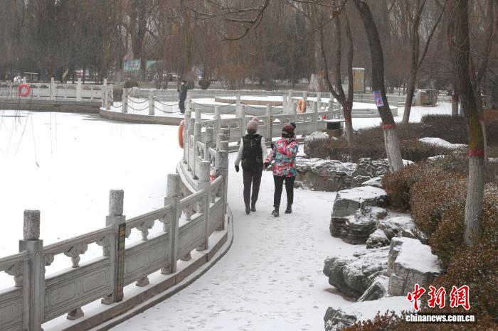 12月20日,青海西宁,市平易近正在西宁市国民花园浏览雪景。授热氛围劝化,西宁市迎去落雪气象。青海省气呼呼象台于18日公布冷潮蓝色预警。 弛忠苹 摄